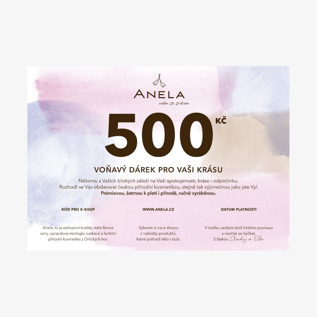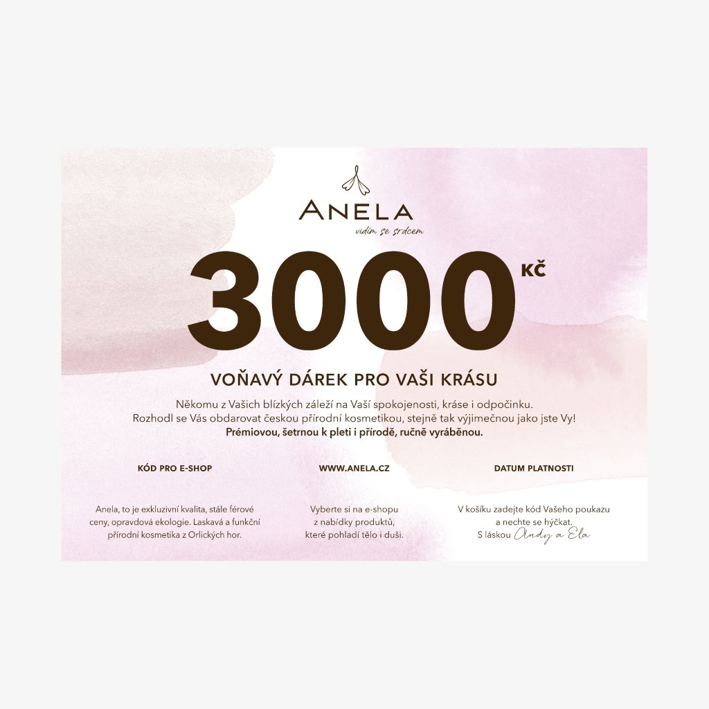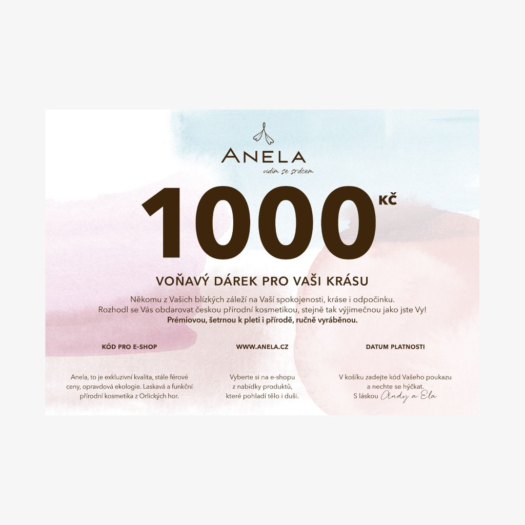 Osobní dárkový poukaz na jakýkoliv výrobek z našeho eshopu v celkové hodnotě 300 Kč, 500 Kč a 1 000 Kč. Využijete jej nejen jako krásný dárek k narozeninám, Vánocům, ale třeba i jako milé poděkování někomu vám blízkému.